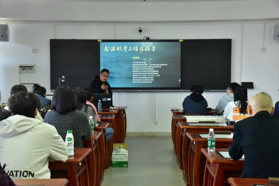 讲座现场,范晓亮教授围绕书法之美、临习方法及作品点评三大板块展开深入讲解。他结合经典书法作品,生动解析了不同书体的艺术特色,强调书法的核心在于欣赏与体悟。通过现场书法示范和作品点评互动,范教授直观展现了书法创作的技巧与文化内涵,让在场师生切实掌握了书法修习的关键要点。