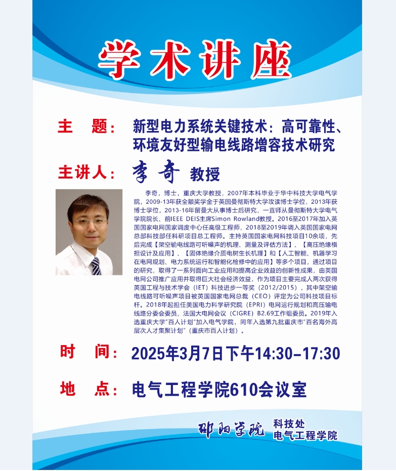 李奇:新型电力系统关键技术:高可靠性、环境友好型输电线路增容技术研究