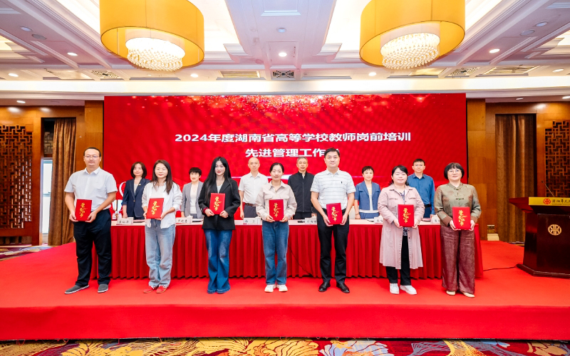 10月17日,湖南省2025年高校教师岗前培训考试工作会议在长沙召开。会上,英国上市官网365荣获“2024年度湖南省高校教师岗前培训工作先进集体”称号,教师工作部扈婷老师被评为“先进管理工作者”,刘旭阳老师获评“优秀学员”。这是英国上市官网365连续第二年获此集体荣誉。