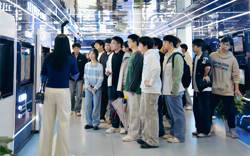 在湖南中电金骏集团有限公司,学生参观了无人机设备展区与智慧展厅,了解固定翼、多旋翼无人机及多种任务载荷的应用场景。企业专家介绍了无人机产品体系、飞行原理及数据处理流程。在室外试飞环节,部分学生在专业飞手指导下体验了无人机操控,加深了对“低空经济”领域的认识。
