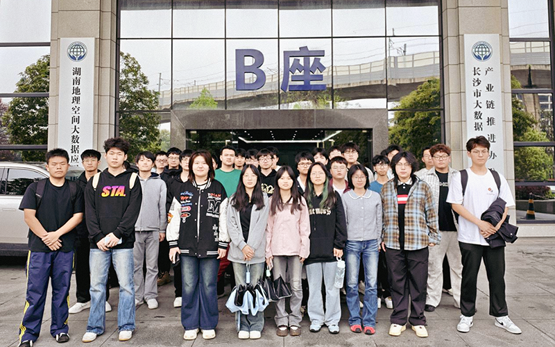 在湖南省第二测绘院,学生参观了自然资源调查监测中心,现场观摩“天空地网”一体化综合监测体系运行,了解“卫星云遥”平台与“铁塔哨兵”系统的工作流程。在“智绘星廊”科普走廊,系统学习了遥感影像统筹服务及测绘技术在国土空间规划、耕地保护等国家战略中的应用。在数据处理部作业室,技术人员演示了卫星遥感数据从原始影像到专题图件的处理过程,解答了学生关于数据源、算法模型等专业问题。