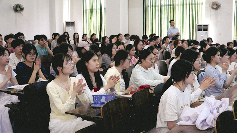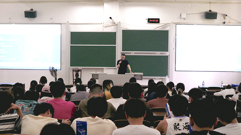 医学技术学院副院长龙南彪在宣讲前讲话。他鼓励同学们主动了解行业用人标准,结合自身优势做好职业规划,以自信从容的态度参加后续面试。