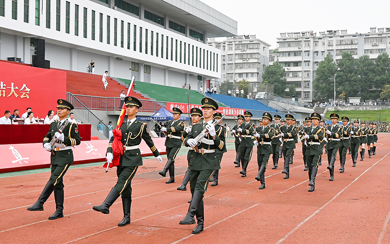 随后,党委委员、副校长黄秋生作军训工作总结。他指出,本次军训呈现出“军地协同铸就育人合力、科学施训彰显育人实效、成果丰硕展现青春风采、典型引领彰显榜样力量”四大特点。在炎炎烈日下,同学们超越自我,告别稚嫩,迈向成熟,展现了新时代英国上市官网365学子艰苦奋斗、顽强拼搏的精神风貌。