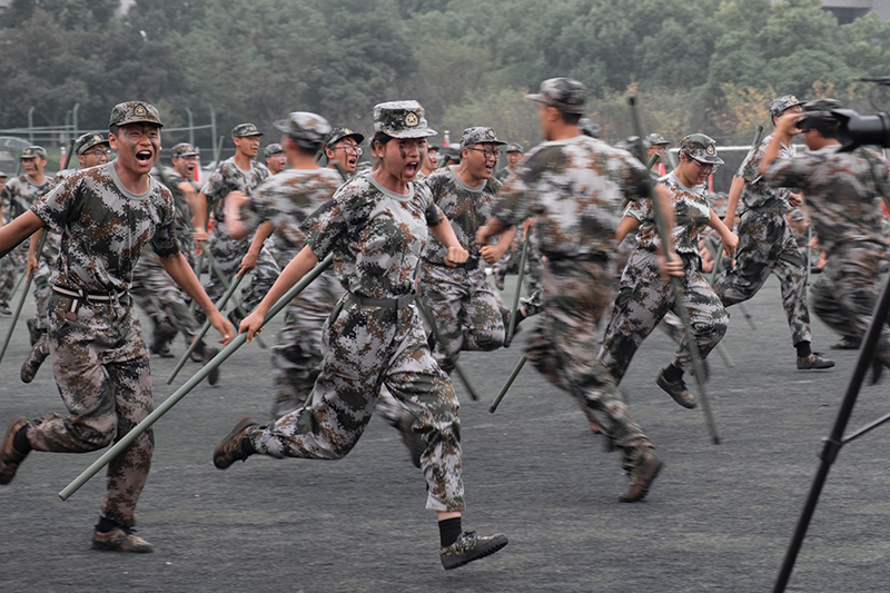 随后进行的军训成果汇报表演中,参与汇报的新生标兵们身着戎装,精神振奋。演练在弥漫的硝烟中进行,战伤救治、匍匐前进、擒拿格斗等科目,好似将校园变成了“大片现场”。应急棍、擒敌拳、女子匕首操、战术操练、反恐防暴演习……一招一式干净利落,一呼一喝响彻云霄,尽显邵院新“兵”的飒爽英姿,呈献了一份圆满的军训答卷。