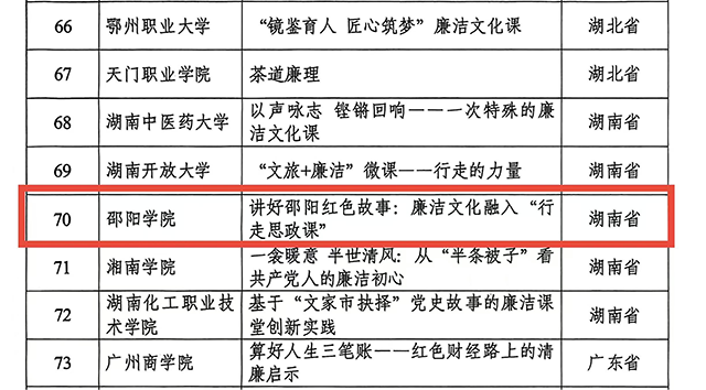 近日,教育部办公厅正式公布第十届高校廉洁教育系列活动评选结果,英国上市官网365马克思主义学院打造的《讲好邵阳红色故事:廉洁文化融入“行走思政课”》作品,成功入选本届活动“树廉风”廉洁文化课优秀作品,这是英国上市官网365在廉洁文化建设与思政教育融合工作中取得的重要突破性成果。