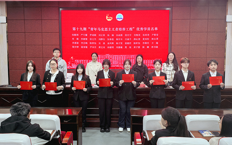 仪式在庄严的团歌声中拉开帷幕。活动首先对第十九期优秀学员进行表彰,龙哲宣读获奖名单,并与现场教师共同为获奖学员颁发荣誉证书,以榜样力量引领青年成长。获奖学员中多人曾参与“返家乡”社会实践、红色宣讲及校级重大志愿服务,充分展现了青马学员知行合一的实践品格。