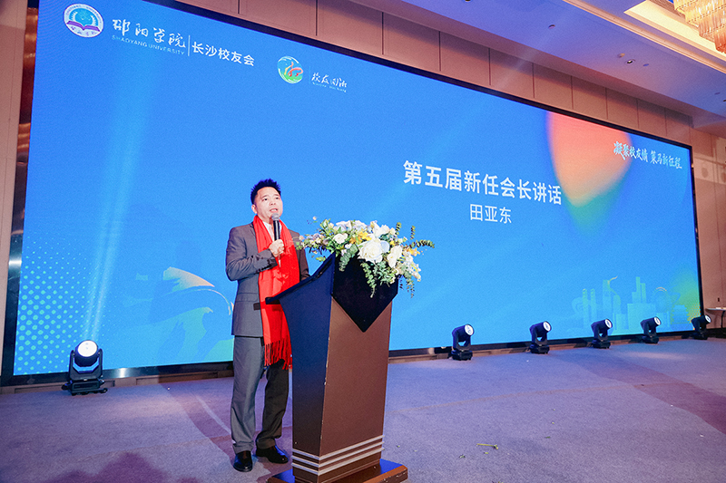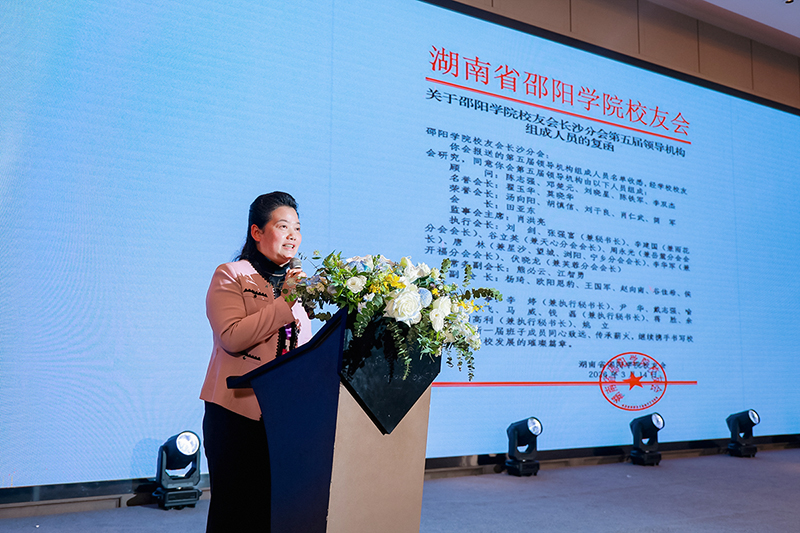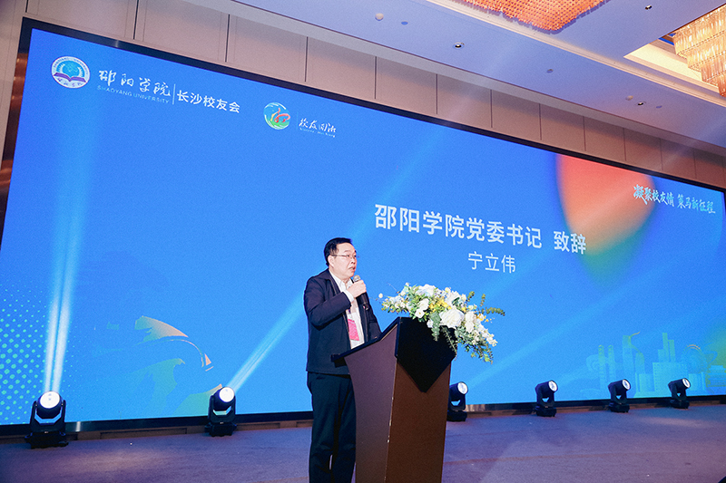 宁立伟在致辞中高度肯定了长沙校友会的卓越贡献,回顾了学校近年来取得的成就,并强调这些成绩的取得离不开全体校友的鼎力支持。他希望长沙校友会传承优良传统,打造有温度、有活力、有作为的校友之家;凝聚校友力量,深化与母校合作,全力助力母校申硕攻坚各项工作;争做“校友回湘”宣传员、排头兵、主力军,吸引更多邵院校友回湘,为湖南高质量发展贡献邵院力量。
