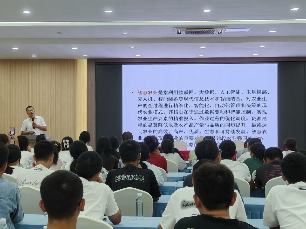 实践活动创新采用“分组沉浸+专题研讨”模式:一组学生深入田间观摩从智能播种到环境调控的全流程生产;另一组与“乡土导师”面对面交流,了解物联网技术解决连作障碍等实际问题的应用案例。企业导师匡华夫教授以《智慧农业本地化实践与人才需求》为题,分析智慧农业发展趋势,为新生职业规划提供前沿指引。