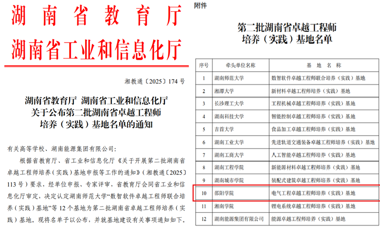 近日,湖南省教育厅与工业和信息化厅等部门联合公布了第二批“湖南省卓越工程师培养(实践)基地”名单。电气工程学院申报的“电气工程卓越工程师培养(实践)基地”经过严格评审,成功获批立项,成为目前湖南省电气工程领域唯一的卓越工程师培养基地。这是对电气工程学院在电气工程领域人才培养、实践教学体系建设以及产教深度融合方面取得成果的充分肯定,标志着电气工程学院在卓越工程师教育培养方面迈上了新的台阶。