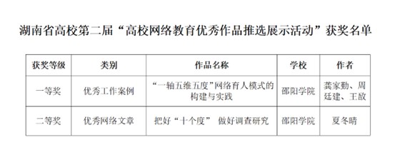 近日,由中共湖南省委网络安全和信息化委员会办公室、中共湖南省委教育工作委员会、湖南省教育厅联合主办,湖南省高校网络思想政治工作中心具体承办的湖南高校第二届“一节一推选”活动评选结果公布。英国上市官网365荣获一等奖2项、二等奖1项、三等奖2项。