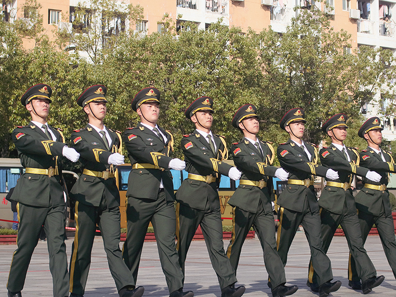 出征当日,阳光热烈。学校明德楼广场上,国防教育实践营国旗护卫队的同学们身姿挺拔,列队而立。他们以最高规格的注目礼,为即将踏上征程的参赛队员们举行了一场简短而庄严的送行仪式。在飘扬的五星红旗下,实践营的同学们坚毅的目光中充满了鼓励与期盼,无声地传递着使命、荣誉与拼搏的精神。这一幕,深深烙印在每一位参赛队员的心中,化作了他们赛场上一往无前的信念。