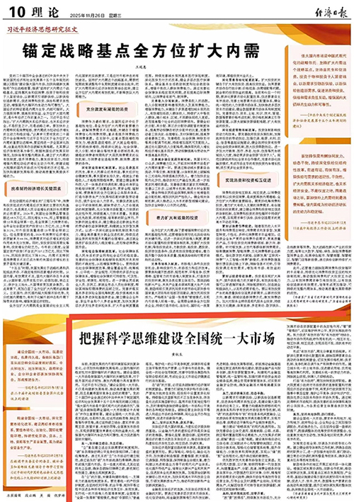 文章立足我国发展内外部环境的深刻变化,紧扣构建新发展格局的战略需求,深刻阐释了建设全国统一大市场的重大意义。文章指出,建设全国统一大市场是做强国内大循环的关键性改革,既是构建新发展格局、推动高质量发展的需要,也是赢得国际竞争主动权的战略选择,对提升国民经济韧性、激发内需潜力具有重要作用。