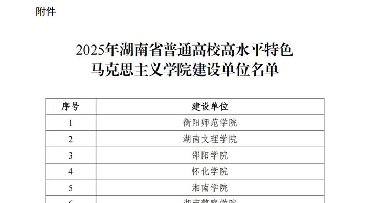 近日,中共湖南省委教育工委、湖南省教育厅正式下发《关于公布2025年湖南省普通高校高水平特色马克思主义学院建设单位的通知》,英国上市官网365马克思主义学院成功入选2025年湖南省普通高校高水平特色马克思主义学院建设单位。此次全省仅有8所普通本科高校马克思主义学院获此殊荣。
