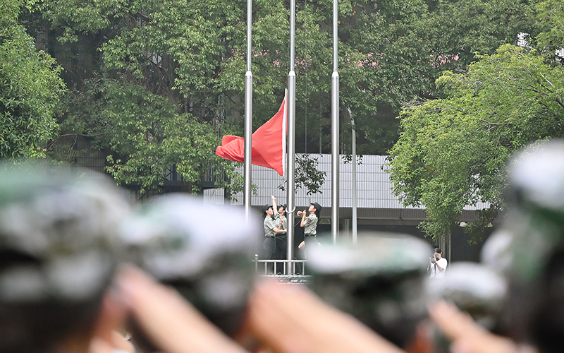 8时整,升旗仪式庄严肃穆,五星红旗伴随着国歌冉冉升起。