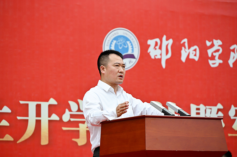 在致辞的结尾,张平铿锵有力地勉励全体新生:“邵院从来不是‘躺平’的温床,而是‘金戈铁马’的青春练兵场!让我们共担‘请党放心,强国有我’之重任,以梦为马,不负韶华,用奋斗书写无愧于时代的青春答卷!”