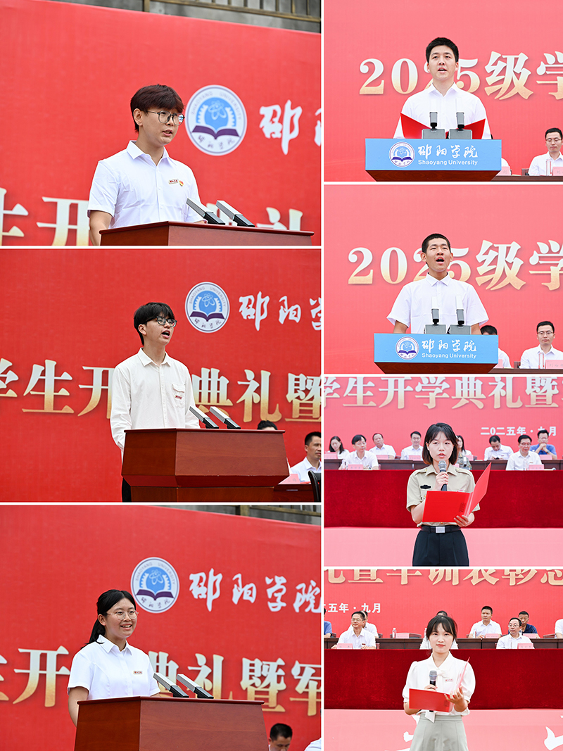 作为研究生新生代表的机械专业2025级研究生周蕾、生物与医药专业2025级研究生李宸宇,以及作为本科老生代表的信息科学与工程学院2023级通信工程专业姜霓、理学院2022级物理学专业周嘉瑶、食品与化学工程学院2022级化工专业张家乐,作为本科新生代表的经济与管理学院2025级金融工程专业任一鸣、外国语学院2025级英语专业彭籼淼也相继发言。他们或分享“大学是自我导航的过程,专业不是命运,而是起点”的感悟,或表达“将个人所学与国家需求结合,在实践中彰显青年担当”的决心,或抒发“以奋斗绘就青春画卷,用所学担当时代使命”的憧憬,共同展现了邵院学子积极向上的精神风貌。