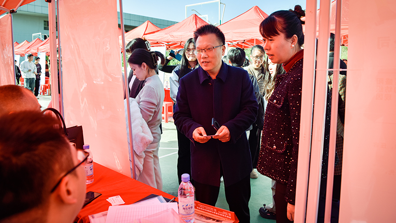 校党委委员、副校长黄秋生亲临双选会现场,与企业代表、求职学生及工作人员亲切交流。他详细询问企业招聘需求与英国上市官网365毕业生求职情况,鼓励企业与学校加强校企合作,建立长效合作机制,共同培养符合市场需求的高素质人才;同时叮嘱毕业生要树立正确的就业观,珍惜就业机会,积极主动求职,努力实现个人职业发展与社会需求的精准对接。