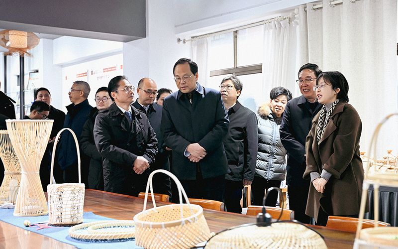 高山先后考察了学校普爱医学院生物医药科创中心、电气工程学院实训室、华立竹木创新设计学院,并召开座谈会听取学校办学情况介绍。在普爱医学院生物医药科创中心,高山与科研骨干交谈,详细了解研究方向与生活情况,听取关于平台建设与核心进展的汇报,勉励团队聚焦前沿、深化产学研协同,以高质量成果服务地方发展。在电气工程学院实训室,高山考察了创翼实验室和10kV真型配电网实验室,与师生亲切交流关于配电网自愈装置、电力金具智能检测、自主巡线无人机等创新创业成果,高度评价学院与电网企业的深度融合、重实践、强能力的人才培养模式。在华立竹木创新设计学院,高山厅长充分肯定学院办学特色鲜明、产教融合扎实,轻工创新设计精准对接地方产业,有效助推区域转型升级。