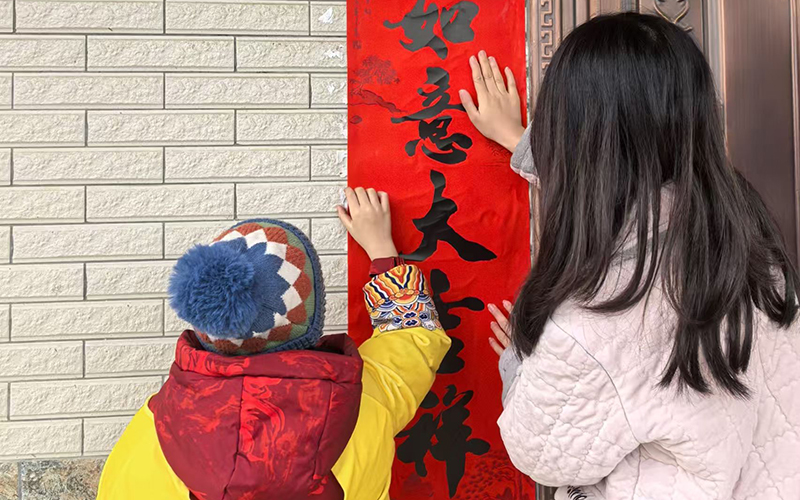 线下,志愿者与孩子们一同开展新春大扫除,擦窗整理、清洁除尘,在劳动中践行“辞旧迎新”的传统习俗。大家一起贴对联、挂福字,将吉祥祝福贴满家门,在笔墨书香与红火装饰中,沉浸式感受春节的喜庆氛围,传承中华优秀民俗文化。